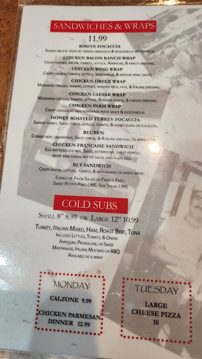 Fresh haddock filet over greens Francesca topped with marinara sauce and melted mozzarella.