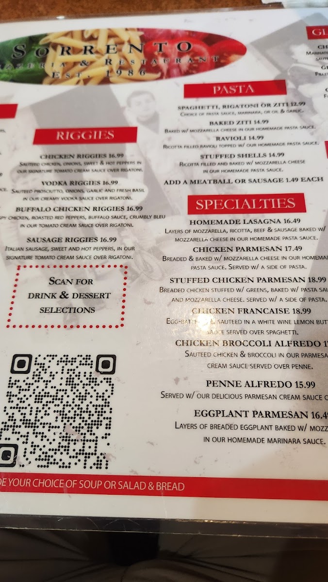Filled with spinach and ricotta topped with our homemade pasta sauce.